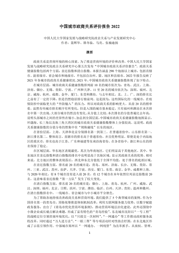 【中国人民大学国家发展与战略研究院政企关系与产业发展研究中心】【20231015】中国城市政商关系评价报告2022-36页