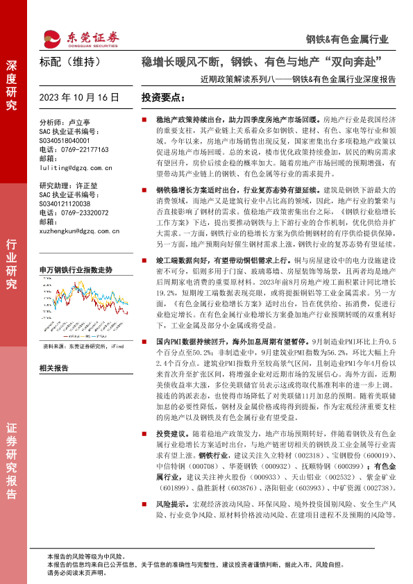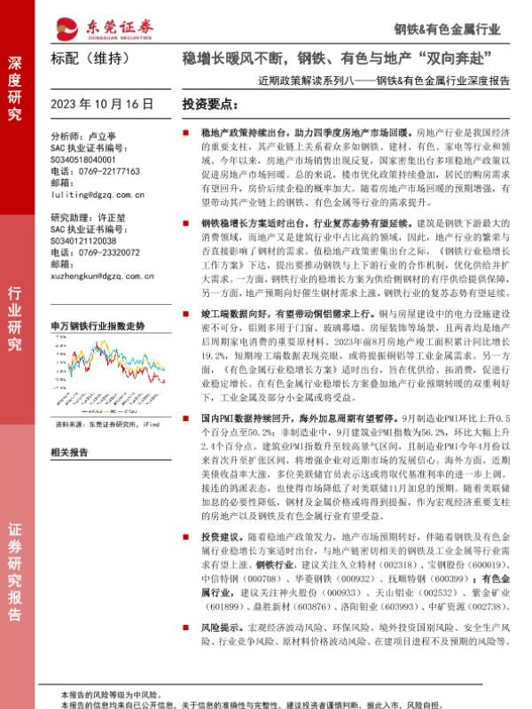 【东莞证券】【20231016】2023-10-17-钢铁&有色金属行业深度报告-近期政策解读系列八-稳增长暖风不断-钢铁、有色与地产“双向奔赴”-30页