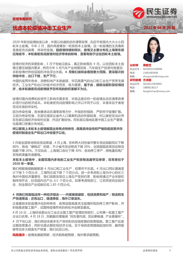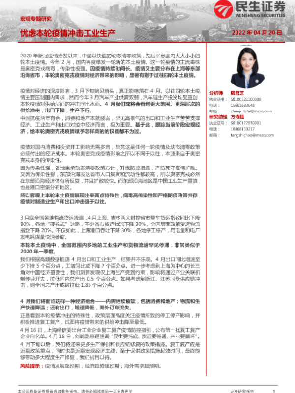 【民生证券】【20220420】宏观专题研究:忧虑本轮疫情冲击工业生产-15页