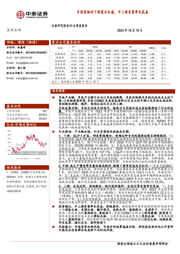 GLP-1R激动剂 医药生物 多肽产业链 市场预测 行业驱动
