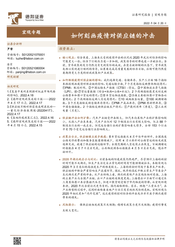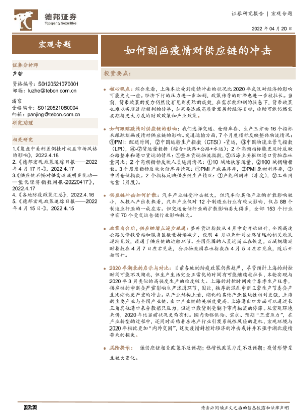 【德邦证券】【20220420】宏观专题:如何刻画疫情对供应链的冲击-15页