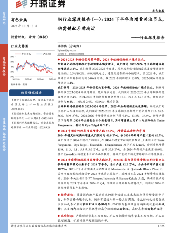 【开源证券】【20231019】铜行业深度报告(一):2024下半年为增量关注节点,供需错配矛盾渐近-26页