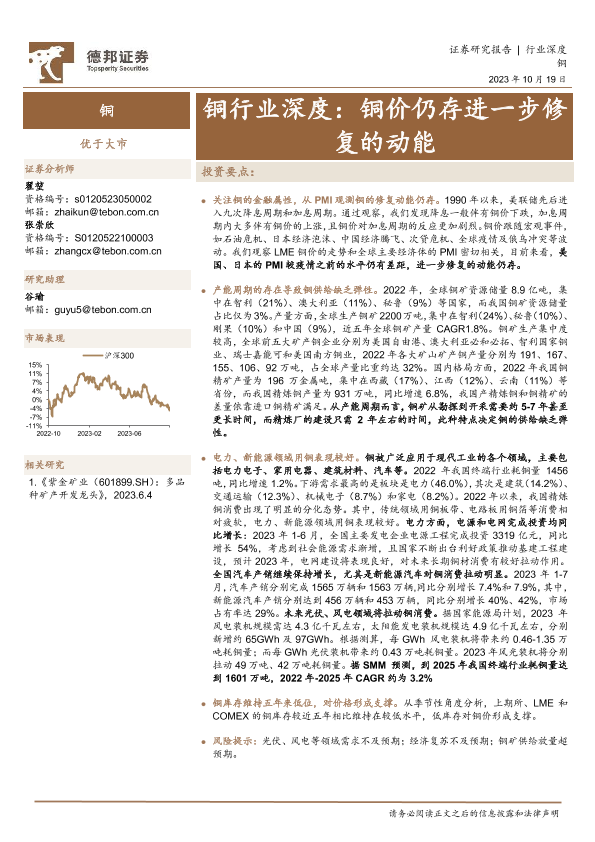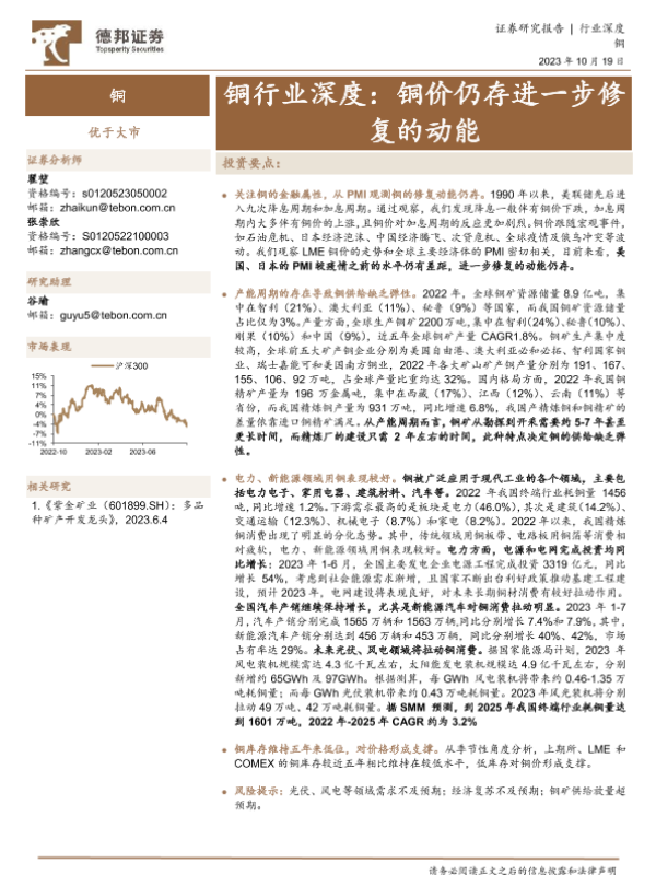 【德邦证券】【20231019】2023-10-20-铜行业深度-铜价仍存进一步修复的动能-22页