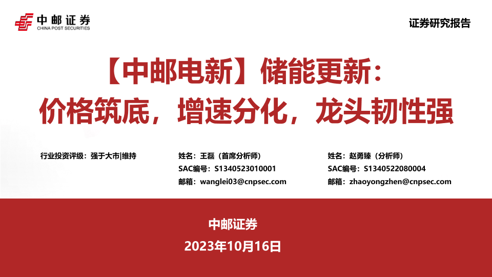 【中邮证券】【20231016】2023-10-22-储能更新-价格筑底-增速分化-龙头韧性强-43页