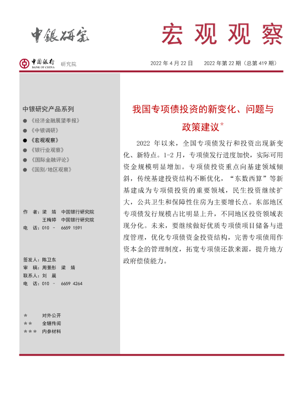 【中国银行研究院】【20220422】我国专项债投资的新变化、问题与政策建议-15页