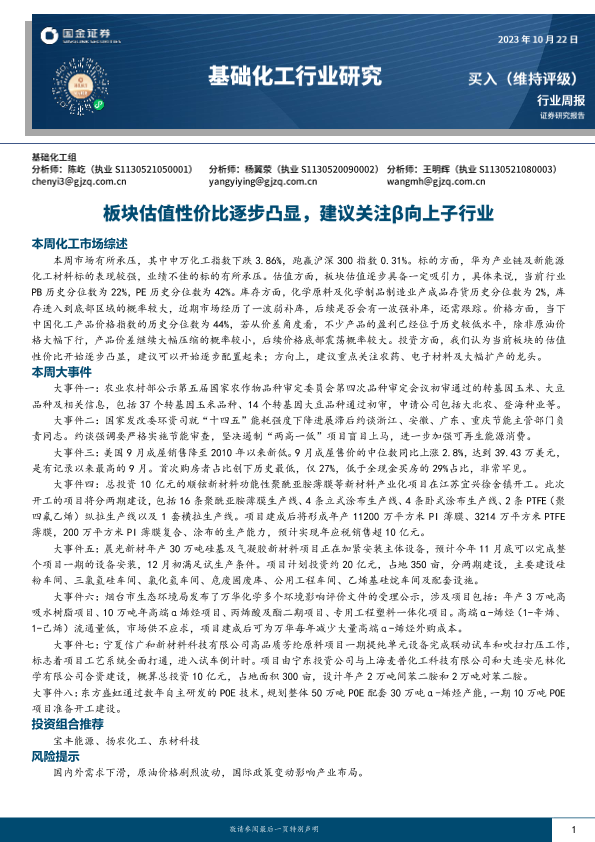 【国金证券】【20231023】基础化工行业研究-板块估值性价比逐步凸显-建议关注β向上子行业-24页