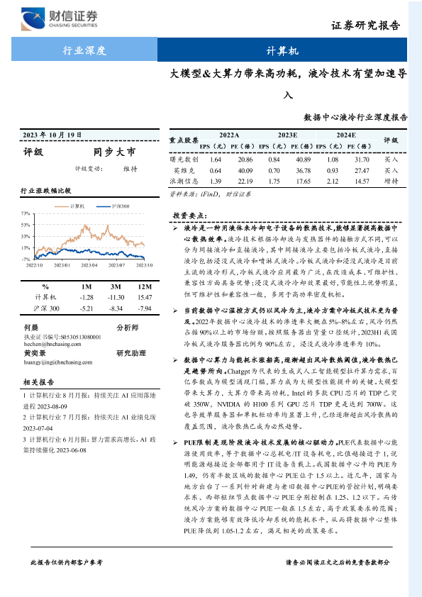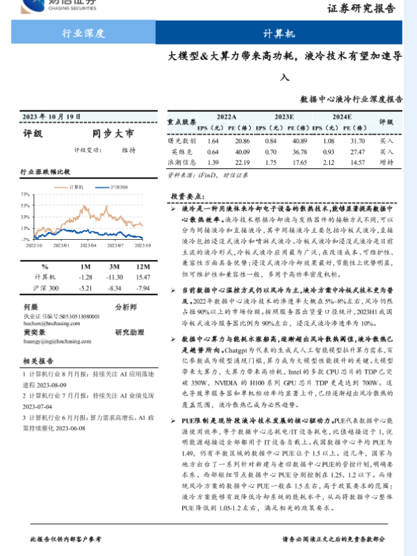 【财信证券】【20231019】2023-10-24-数据中心液冷行业深度报告-大模型&大算力带来高功耗-液冷技术有望加速导入-41页