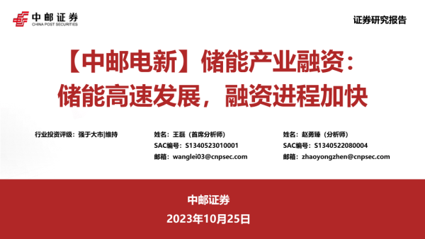 【中邮证券】【20231025】储能产业融资-储能高速发展-融资进程加快-37页
