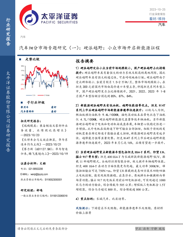 【太平洋证券】【20231027】汽车细分市场专题研究(一):硬派越野:小众市场开启新能源征程-21页