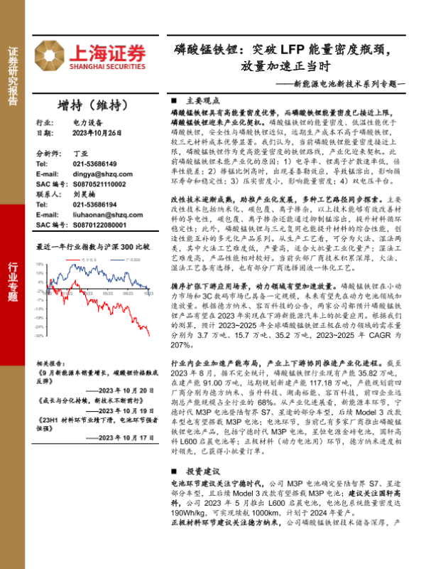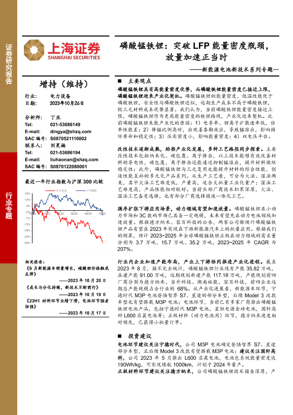 【上海证券】【20231027】磷酸锰铁锂:突破LFP能量密度瓶颈,放量加速正当时-21页