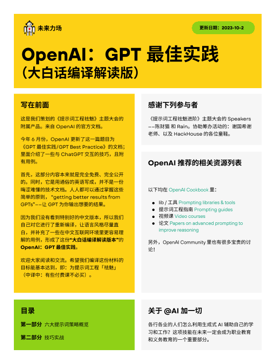 【未来力场】【202310】OpenAI:GPT 最佳实践(中文大白话编译解读版)-38页
