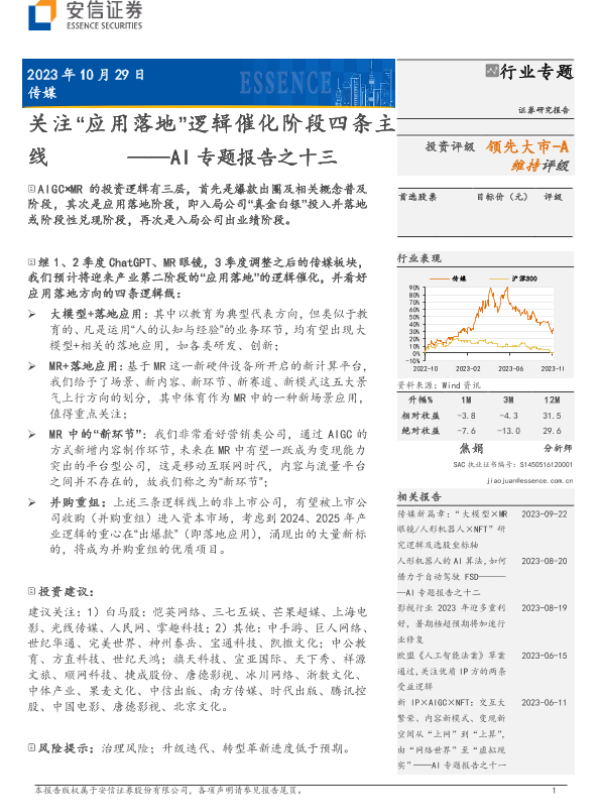 【安信证券】【20231030】2023-10-30-传媒-AI专题报告之十三-关注“应用落地”逻辑催化阶段四条主线-12页