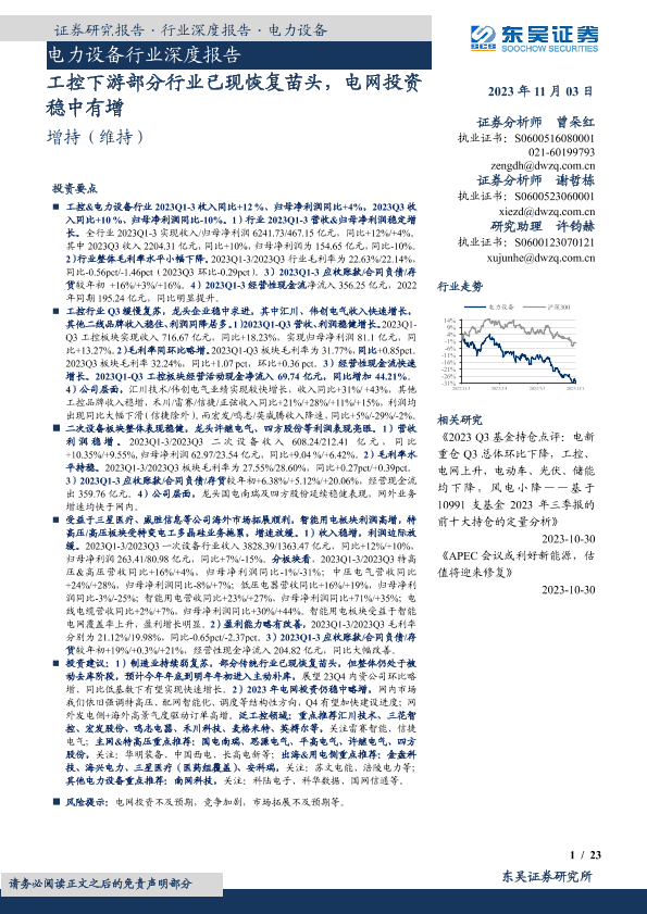【东吴证券】【20231103】2023-11-04-电力设备行业深度报告-工控下游部分行业已现恢复苗头-电网投资稳中有增-23页