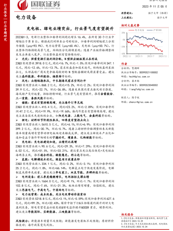【国联证券】【20231105】电力设备-充电桩、绿电业绩突出-行业景气度有望提升-69页