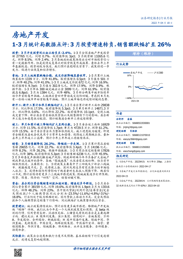 【国盛证券】【20220418】房地产开发行业1-3月统计局数据点评:3月投资增速转负,销售额跌幅扩至26%-15页