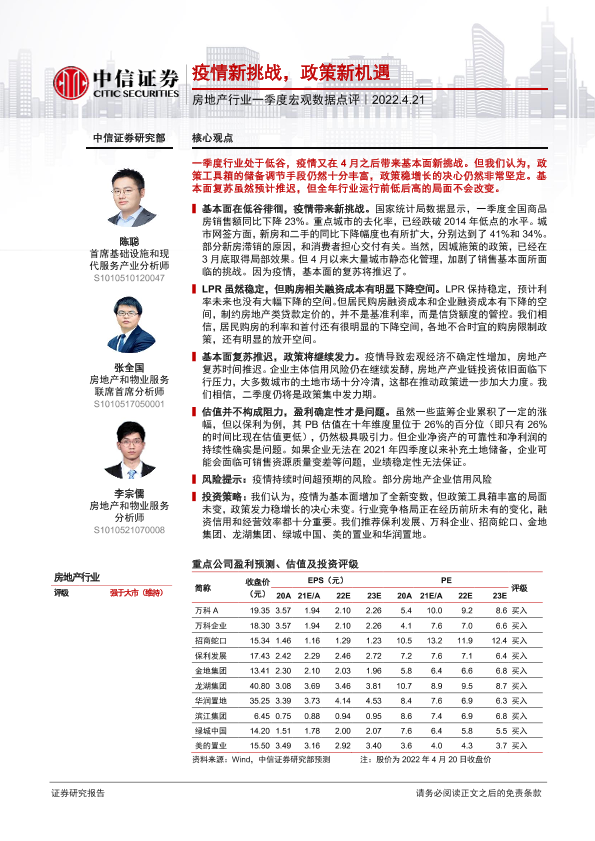 【中信证券】【20220421】房地产行业一季度宏观数据点评:疫情新挑战,政策新机遇-20页