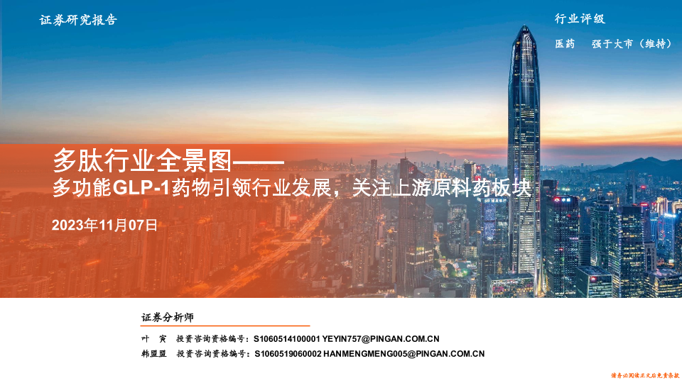【平安证券】【20231107】多肽行业全景图——多功能GLP-1药物引领行业发展,关注上游原料药板块-29页