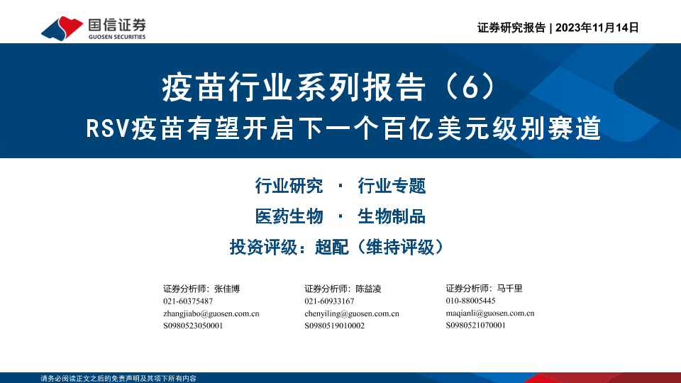 【国信证券】【20231114】疫苗行业系列报告(6) RSV疫苗有望开启下一个百亿美元级别赛道-30页