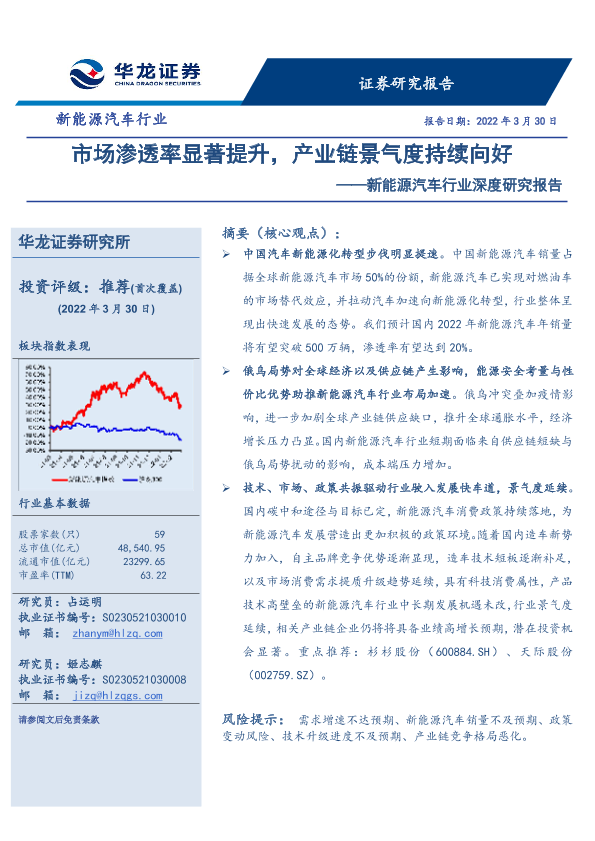 【华龙证券】【20220330】新能源汽车行业深度研究报告:市场渗透率显著提升,产业链景气度持续向好-34页