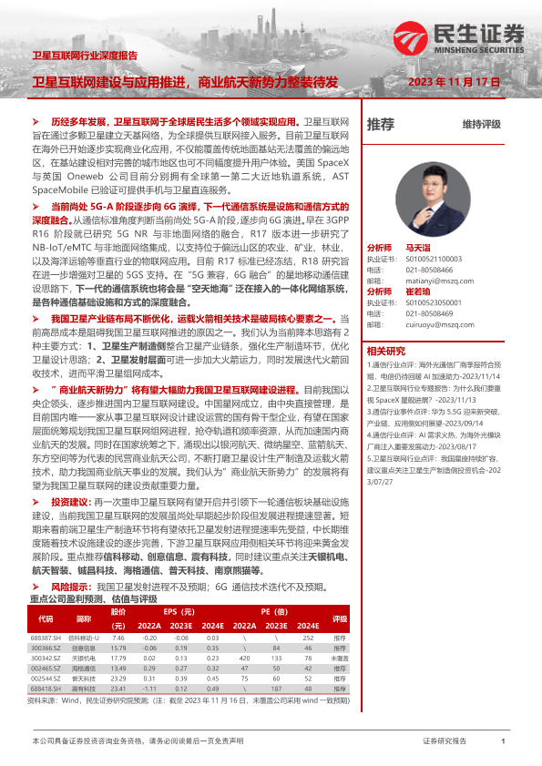 【民生证券】【20231117】卫星互联网行业深度报告 卫星互联网建设与应用推进,商业航天新势力整装待发-51页