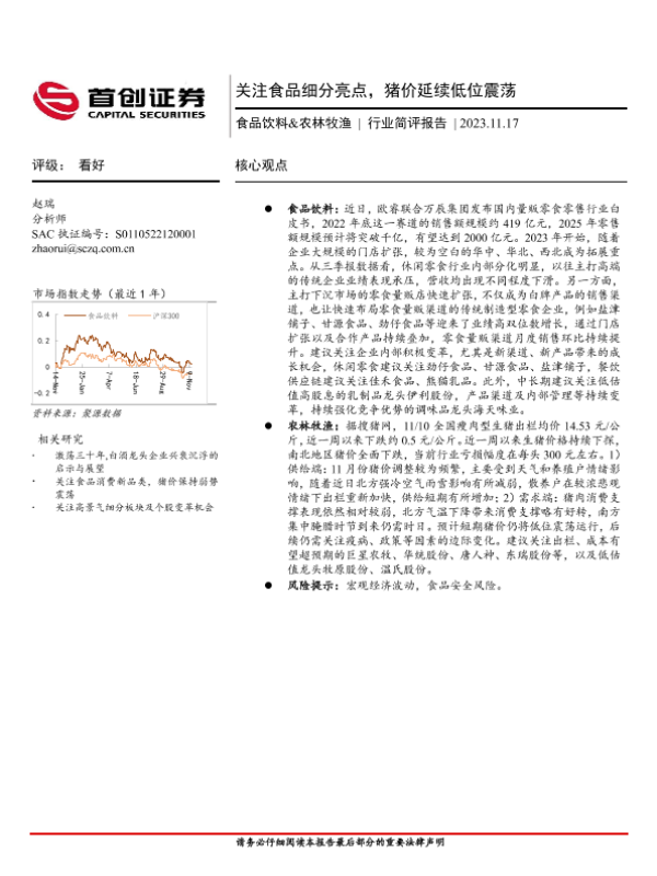 【首创证券】【20231117】2023-11-18-食品饮料&农林牧渔行业简评报告-关注食品细分亮点-猪价延续低位震荡-13页