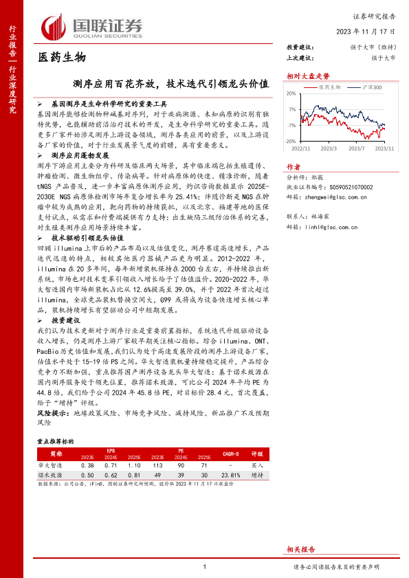 【国联证券】【20231119】医药生物-测序应用百花齐放-技术迭代引领龙头价值-26页