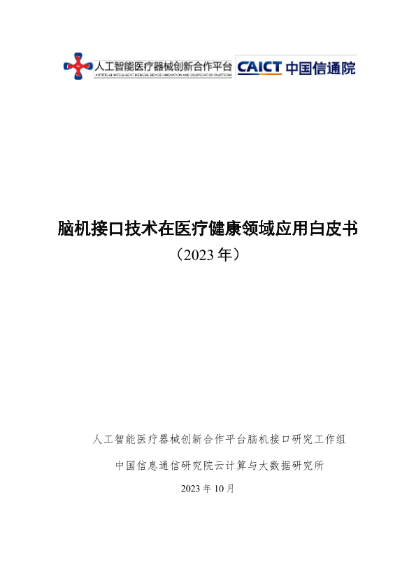 【中国信息通信研究院】【202310】脑机接口技术在医疗健康领域应用白皮书(2023年)-120页