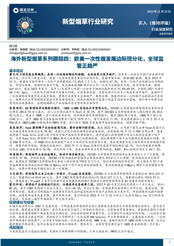 【国金证券】【20231123】海外新型烟草系列跟踪四-欧美一次性烟发展边际现分化-全球监管正趋严-17页