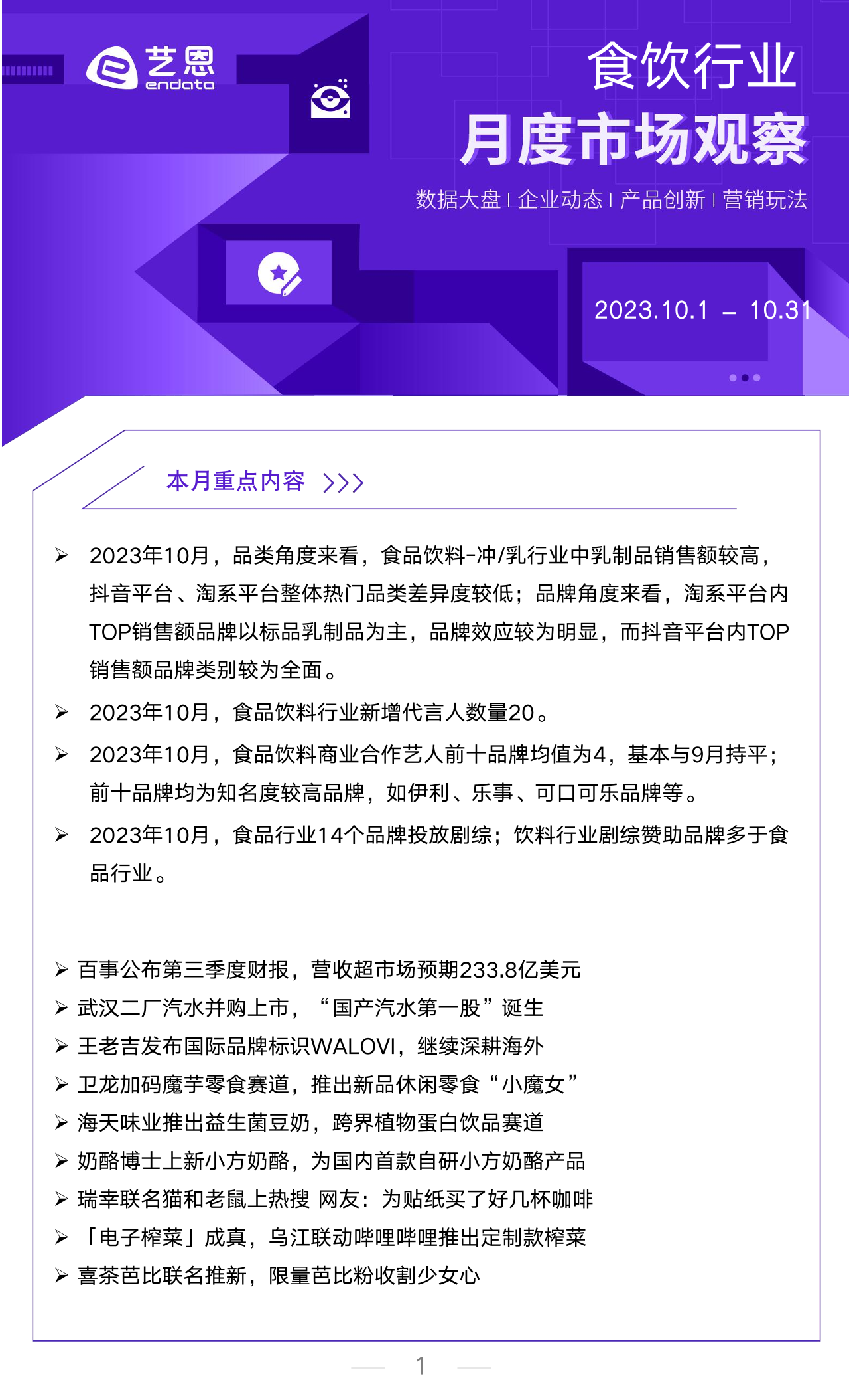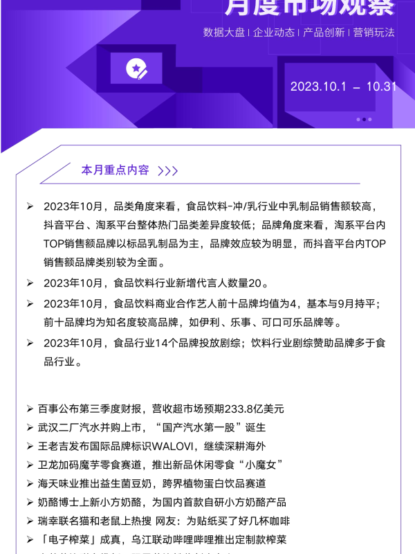【艺恩】【20231125】2023年10月食饮行业洞察报告-11页