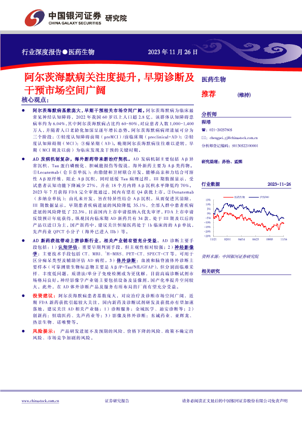 【银河证券】【20231126】医药生物行业深度报告-阿尔茨海默病关注度提升-早期诊断及干预市场空间广阔-32页