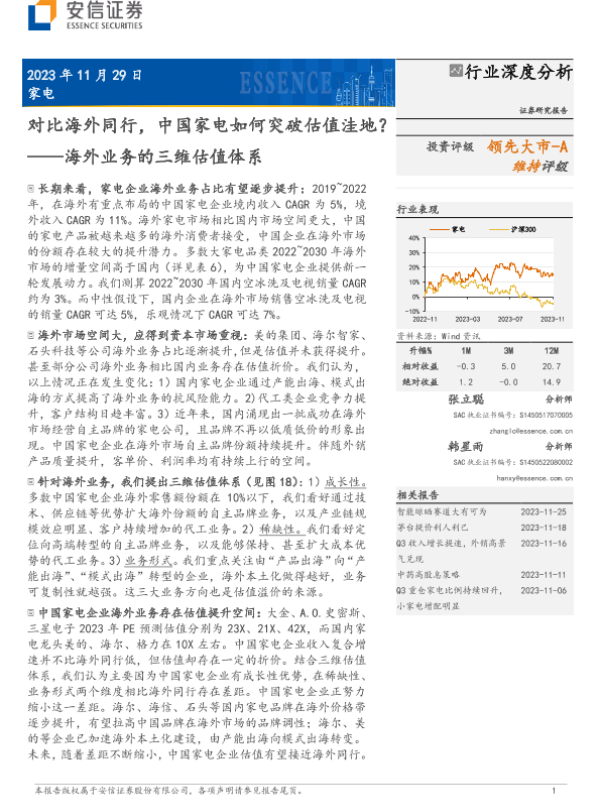【安信证券】【20231130】家电行业深度分析-海外业务的三维估值体系-对比海外同行-中国家电如何突破估值洼地?-43页