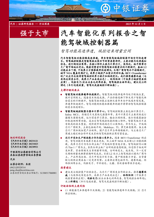 【中银证券】【20231201】汽车智能化系列报告之智能驾驶域控制器篇-智驾功能高速渗透-域控迎来增量空间-46页