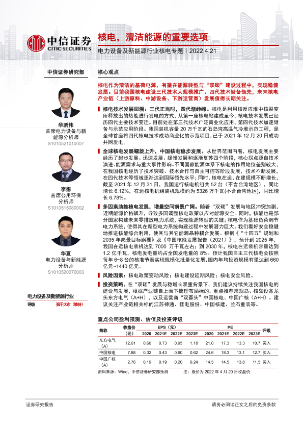 【中信证券】【20220421】电力设备及新能源行业核电专题:核电,清洁能源的重要选项-27页
