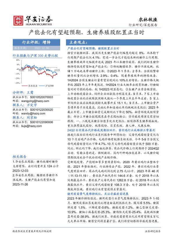 【华安证券】【20231206】产能去化有望超预期,生猪养殖股配置正当时-51页