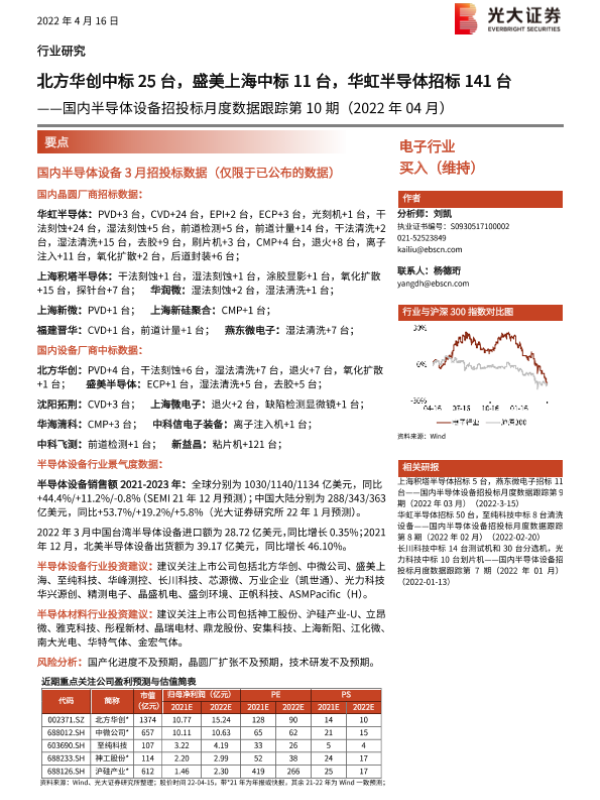 【光大证券】【20220416】体设备招投标月度数据跟踪第10期(2022年04月):北方华创中标25台,盛美上海中标11台,华虹半导体招标141台-20页