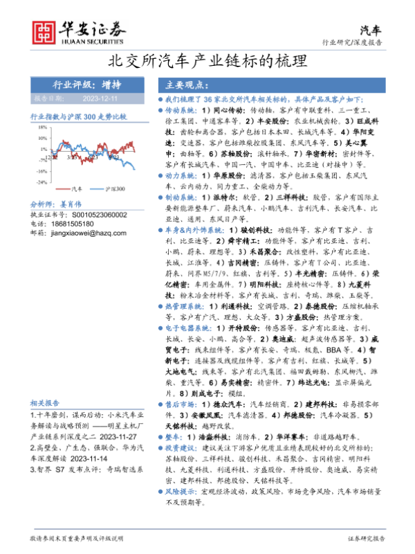 产业链 北交所 投资建议 汽车行业 证券分析