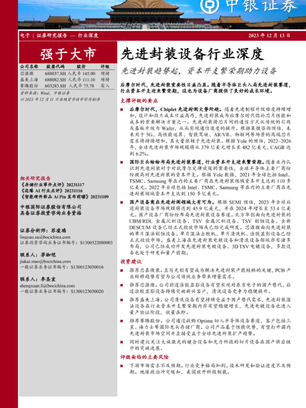 【中银证券】【20231213】先进封装设备行业深度-先进封装趋势起-资本开支繁荣期助力设备-44页