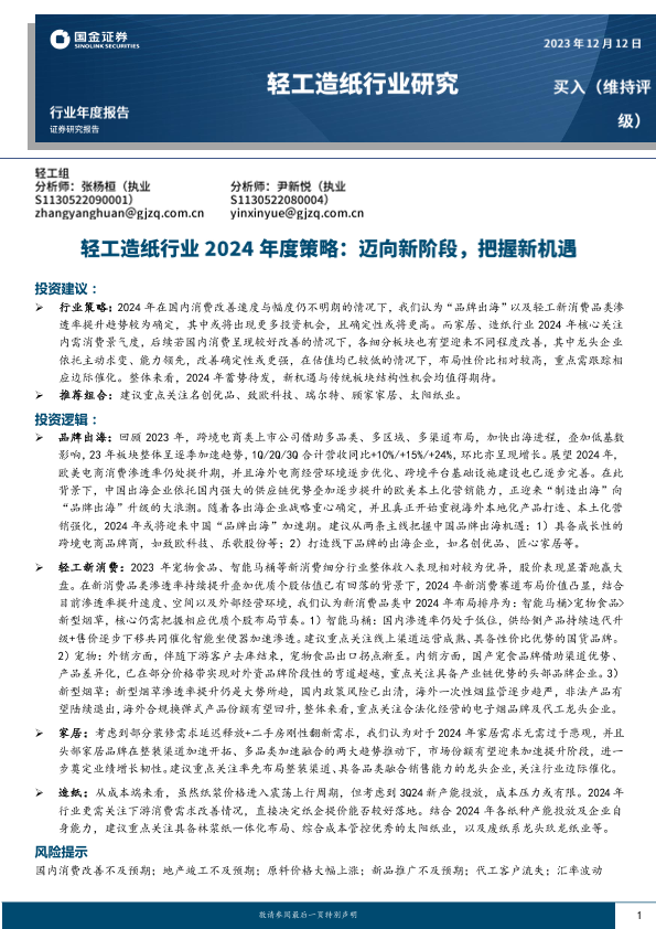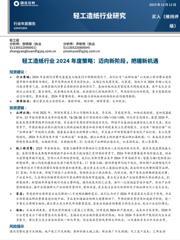 【国金证券】【20231214】轻工造纸行业2024年度策略-迈向新阶段-把握新机遇-44页