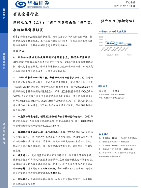 【华福证券】【20231214】锡行业深度(二):“新”消费带来新“锡”望-期待传统需求修复-18页