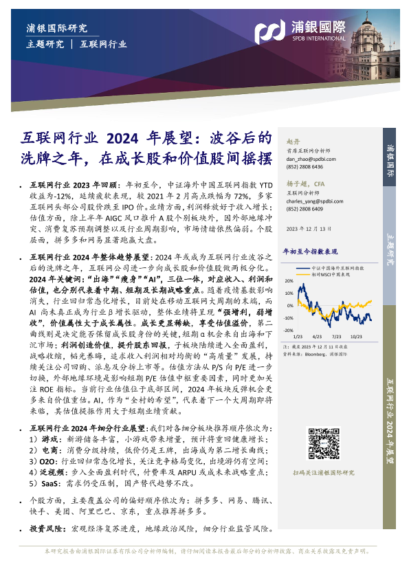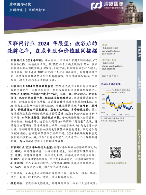 【浦银国际】【20231215】互联网行业2024年展望:波谷后的洗牌之年,在成长股和价值股间摇摆-44页