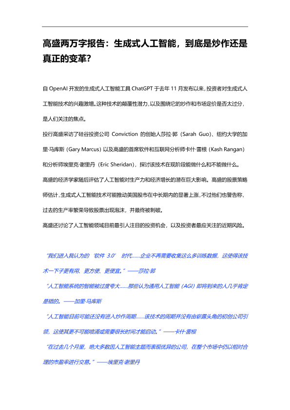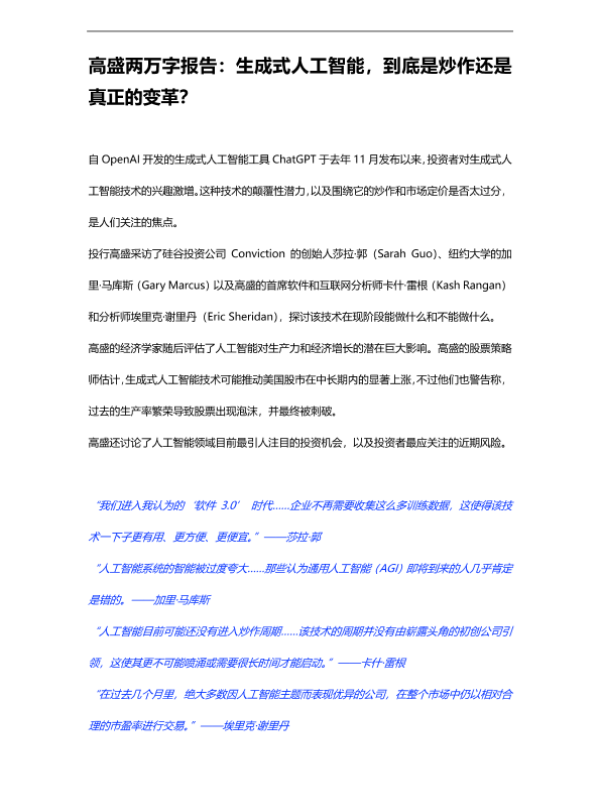 【Goldman Sachs】【20231219】生成式人工智能:是炒作还是真正的变革?-50页