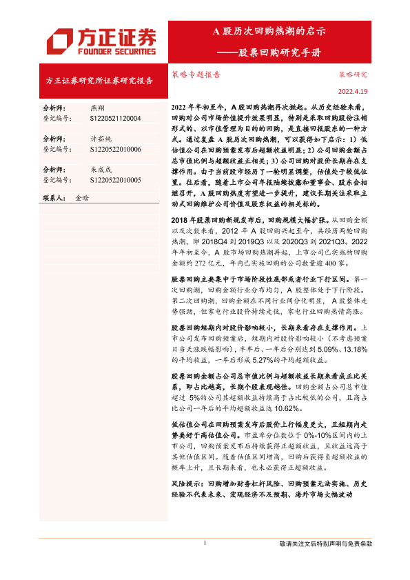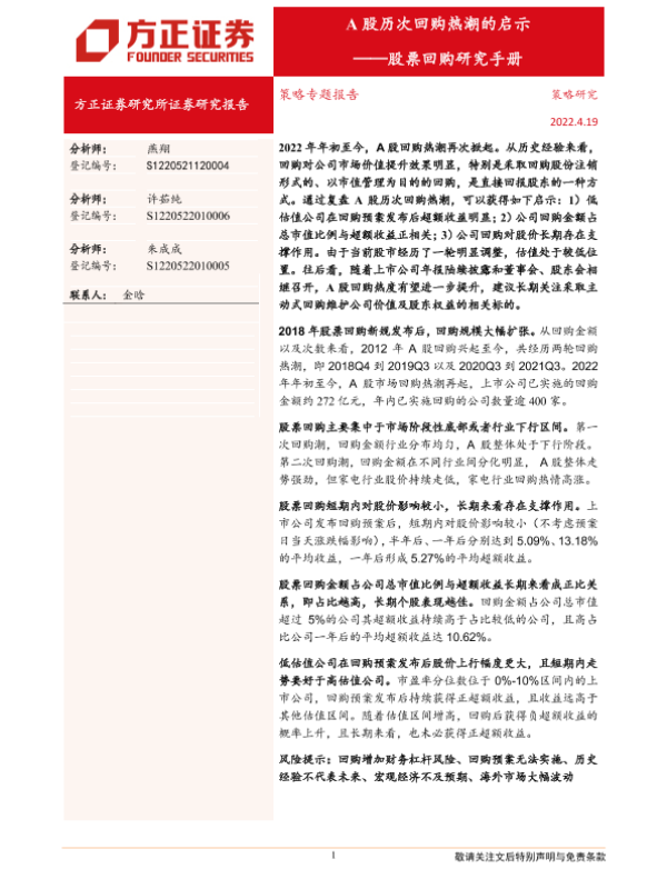 【方正证券】【20220419】策略专题报告:股票回购研究手册,A股历次回购热潮的启示-20页