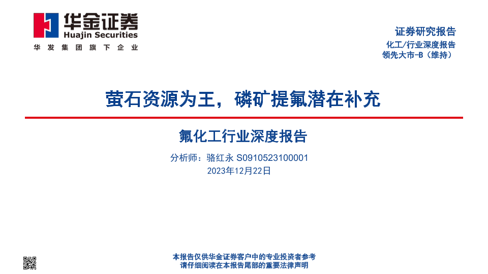 【华金证券】【20231222】氟化工行业深度报告-萤石资源为王-磷矿提氟潜在补充-50页