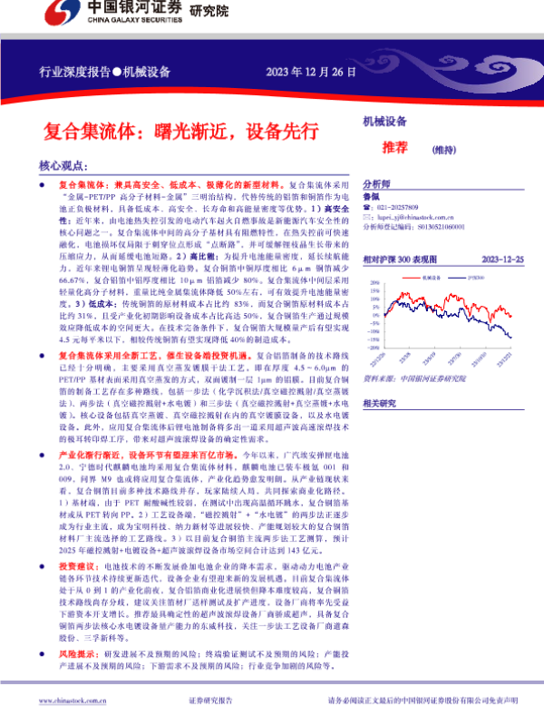 【银河证券】【20231226】机械设备行业深度报告-复合集流体-曙光渐近-设备先行-27页