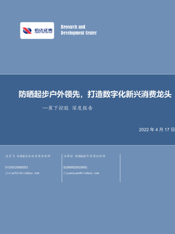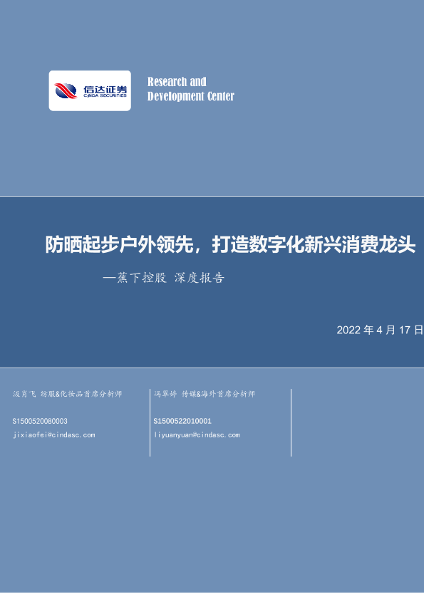 【信达证券】【20220417】纺织服装行业蕉下控股深度报告:防晒起步户外领先,打造数字化新兴消费龙头-23页
