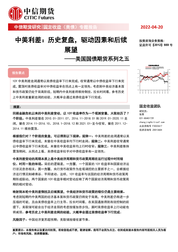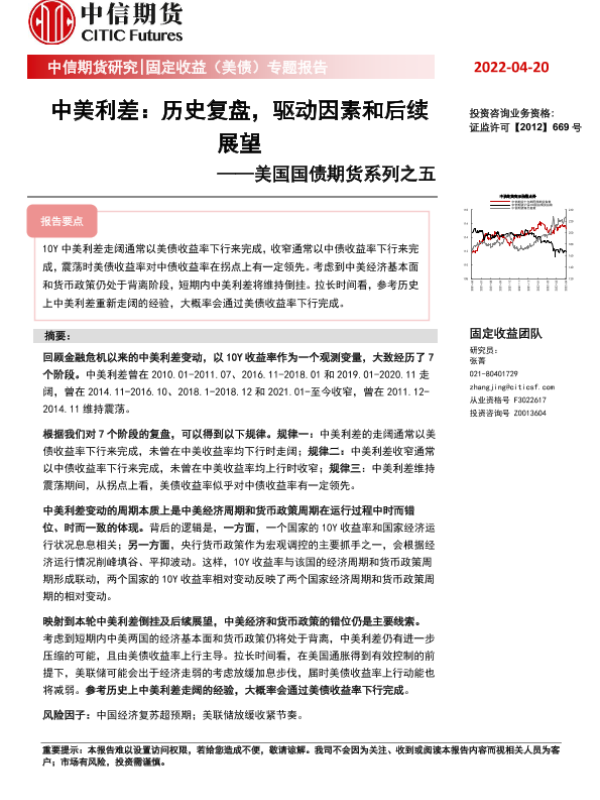 【中信期货】【20220420】美国国债期货系列之五:中美利差,历史复盘,驱动因素和后续展望-38页