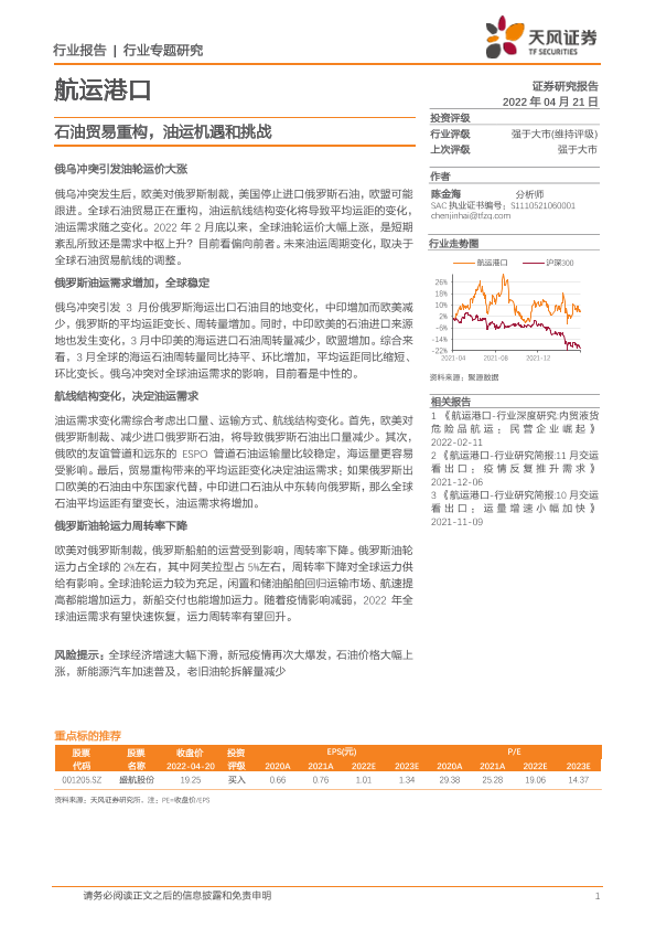 【天风证券】【20220421】航运港口行业专题研究:石油贸易重构,油运机遇和挑战-17页
