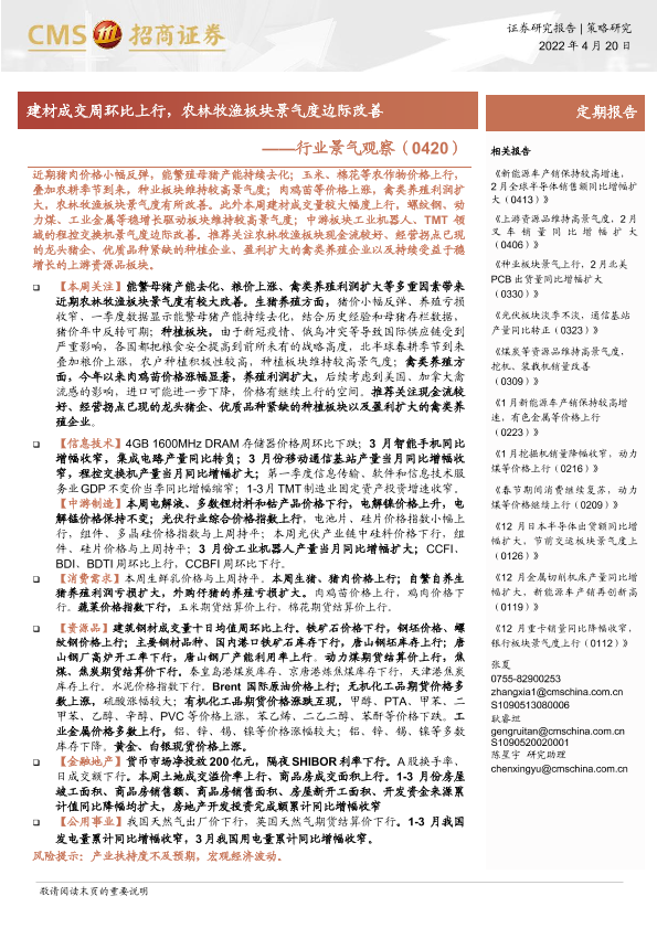 【海通证券】【20220420】行业景气观察:建材成交周环比上行,农林牧渔板块景气度边际改善-31页