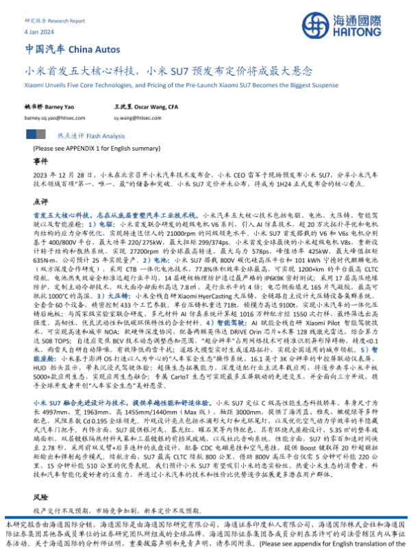 【海通国际】【20240105】小米首发五大核心科技,小米SU7预发布定价将成最大悬念-14页