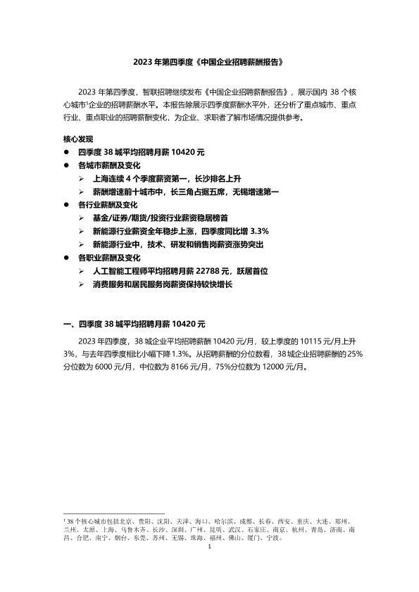 【智联招聘】【20240107】2023年四季度中国企业招聘薪酬报告-9页